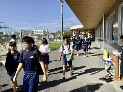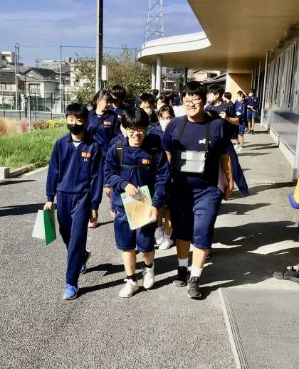 10/6(金)28C社会 公開日 2023/10/06 更新日 2023/10/06 各学年から 2年8組は、地域の歴史を学ぶため、地域の史料から学ぶために校外学習を行いました。 小学校の町探検以来の校外での学習とあって、楽しそうな顔で、出発しました。 2年