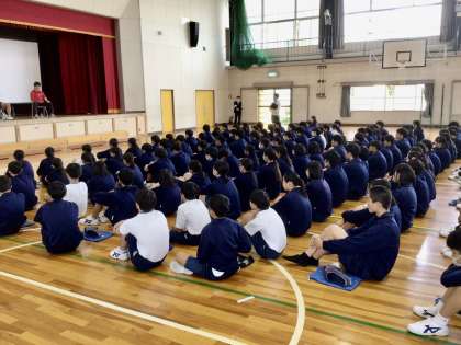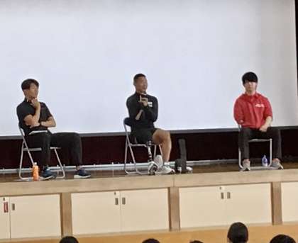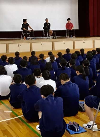 10/11(水)We Loveとよた特別道徳授業1 公開日 2023/10/11 更新日 2023/10/11 学校の特色ある活動 今日は、パラアスリートの 佐藤圭太さん、パラアスリートで本校卒業生の池田樹生さん、そして 豊田自動車所属 本校卒業生の山村さんをお迎えして、We Loveとよた特別道徳授業を行いました。 特色ある活動
