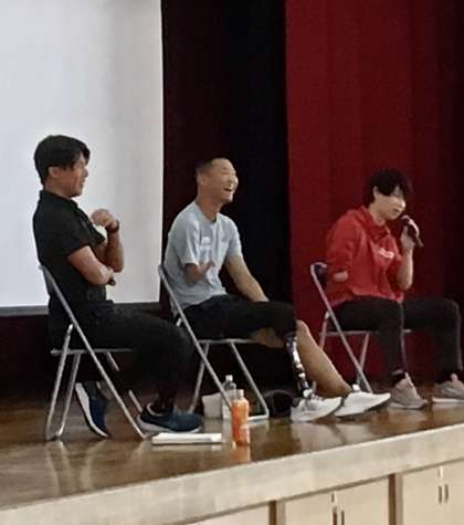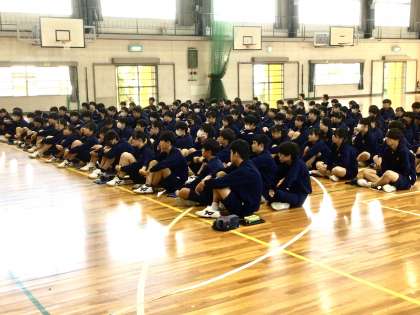 3年生を対象に、3時間目と4時間目の2つに分けて4クラスずつの生徒の前でご講演いただきました。