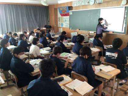 13C 英語の授業です。ALTのグエンさんも一生懸命に教えています。