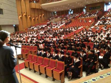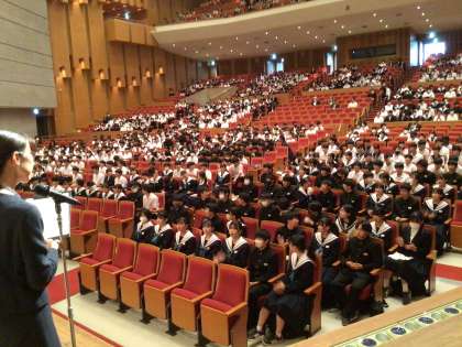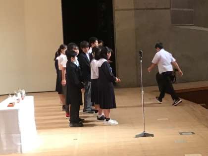 表彰が進んでいきます。代表生徒が壇上に上がってきました。