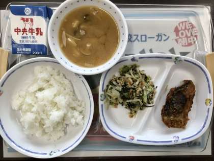 今日の給食は、 ⭐️鯖の竜田揚げ 💫のリ酢あえ ⭐️きのこの味噌汁 ⭐️ご飯と牛乳でした。