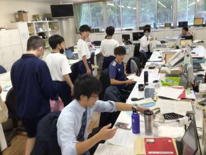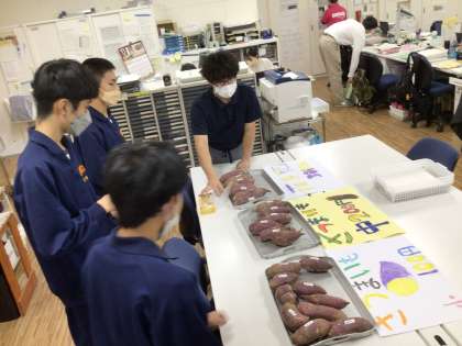 1、2、3、4学級の生徒が自分たちで作った野菜やコースターなどを先生たちに売りにきてくれました。