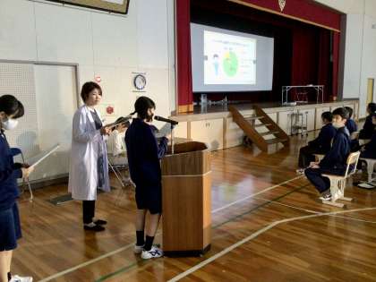 2年生もスタートは、保健委員の発表から行いました。「がん」に対する意識調査の結果を立派に発表することができました。