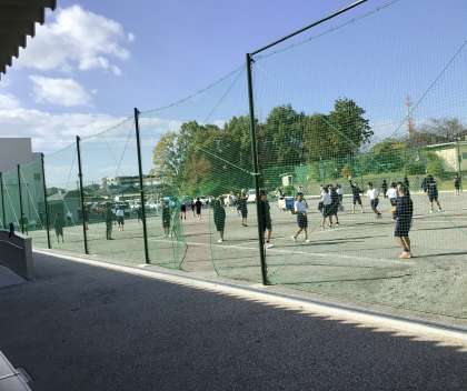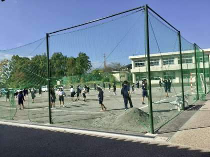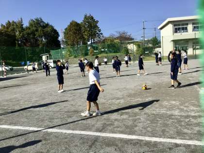 体育館は、学校保健人権大会のため、バレーボールの授業は、ハンドボールコートで行いました。
