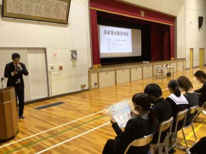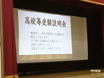 11/10(金)6時間目高校等受験説明会 公開日 2023/11/11 更新日 2023/11/11 各学年から 高校等に受験をする生徒がほぼ100%の朝中です。 これからの私立、公立の高校受験に関する情報を親子で聞きました。 最初に校長挨拶を行い、その後、進路指導主事が丁寧に説明をさせていただきました。 3年