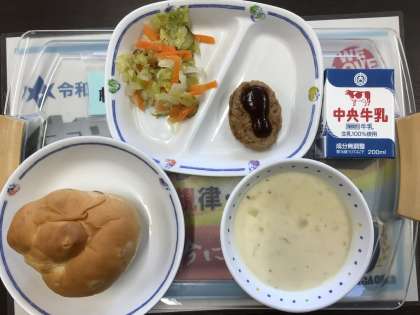 今日の給食のメニューです。生徒たちは、好きな給食ですね。