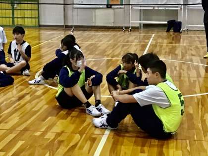 1試合終わったところでの話し合いの様子です。この後2試合目を行います。