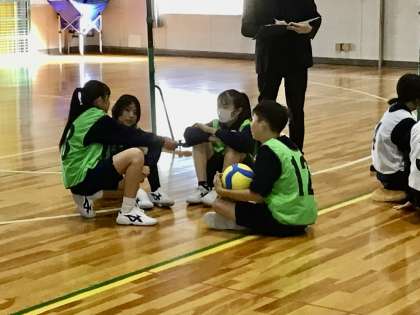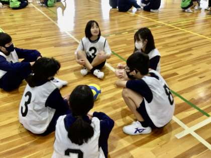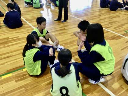 話し合いの場面です。この後2試合目を行います。