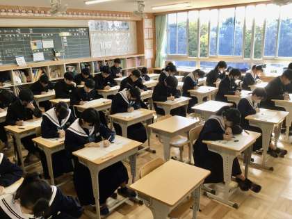今2時間目のテストを行っています。 3年生は、数学です。