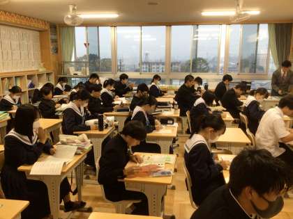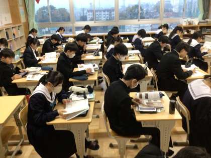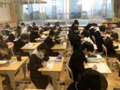 朝の学習の様子です。 3年1組、2組、3組です。