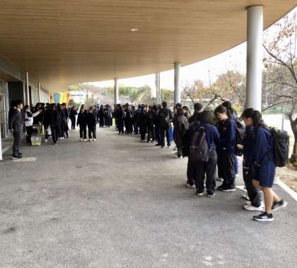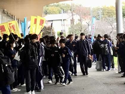 今日も寒い中、朝の挨拶運動を行っています。