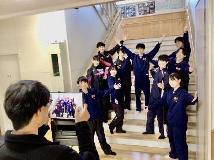 生徒会通信の写真撮影を7時44分ごろ行っていました。 生徒会通信をお楽しみに