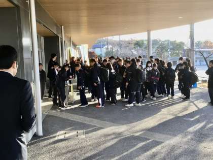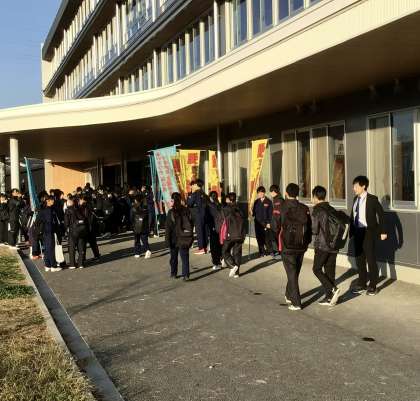挨拶運動を行う生徒たち 登校の様子です。