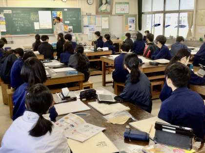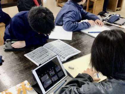 1年7組は、レタリングを使った絵文字の美術の授業です。