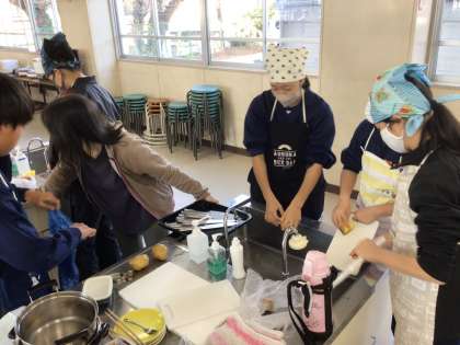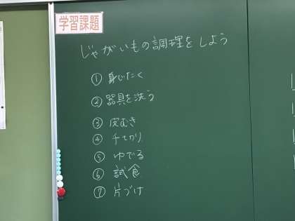 2年生の家庭科の授業です。 じゃがいもの調理を行っています。