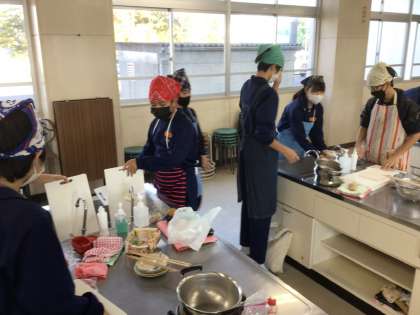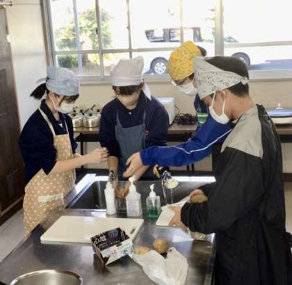 11/29(水)2年生 調理実習じゃがいもの調理3 公開日 2023/11/29 更新日 2023/11/29 各学年から じゃがいもを茹で、切り分け、試食をします。きっとほっこりして美味しいですね。 2年