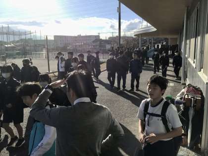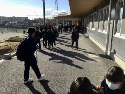昨日の帰りの様子です。 運動場では、本日の朝中フェスティバルの準備がなされていました。