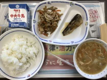 12/4(月)今日の給食!! 公開日 2023/12/04 更新日 2023/12/04 校長室から 今日の給食は、 ⭐️イワシの生姜煮 ⭐️五目きんぴら ⭐️ちゃんこ汁 ⭐️ご飯と牛乳です。 1、2、3、4学級の皆さんも美味しくいただいていましたね。