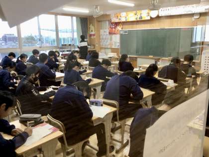 12/5(火)3年生のフロアから 公開日 2023/12/05 更新日 2023/12/05 各学年から 3年生のフロア(4F)です。 ・3年生の生徒造形作品展(至楽展)です。 ・3年8組の朝の活動の様子です。 ・3年生のための入試や学習に使う問題集です。 3年
