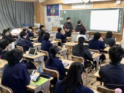 12/7(木)自然教室に向けて 公開日 2023/12/07 更新日 2023/12/07 各学年から 2年生は、学級活動の時間に自然教室に向けての時間が始まっています。係の生徒が、クラスメイトに話をしている場面が見られます。 2年6組、7組、8組です。 2年