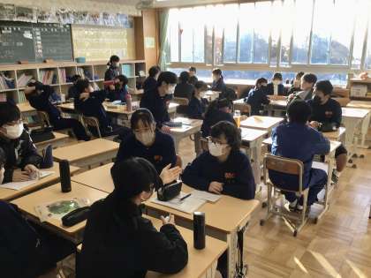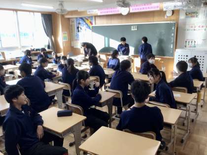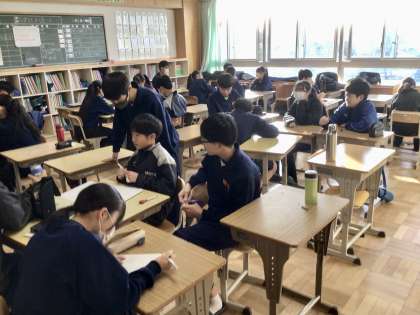 2年生の朝の帯学活の様子です。 2年生1組 2組 3組です。