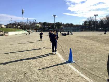 すっきりと晴れた好天の中、元気に走る1年生です。