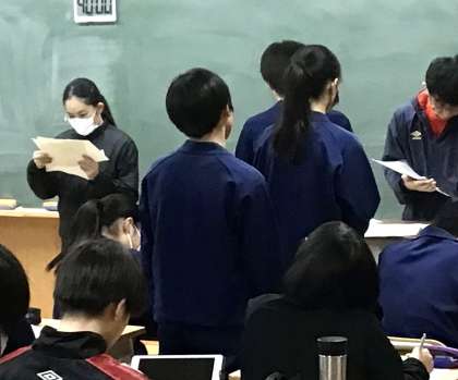 3年生は、昨日の学習診断テストの結果を配付していました。 3年4組 2組です。