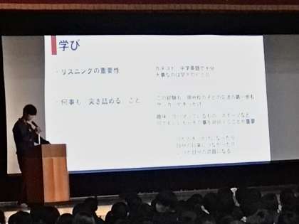 12/20(水)豊田市中学生海外派遣報告会4 公開日 2023/12/20 更新日 2023/12/20 学校行事 最後に上川さんが、この研修で学んだことを皆に話していました。体験できたからこそ言えることだと感じました。体験に基づく、立派な発表でした。