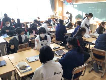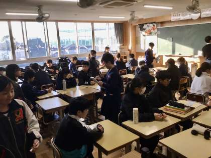 12/21(木)朝の活動の様子 1年生 公開日 2023/12/21 更新日 2023/12/21 各学年から 1年生は、話し合い活動を行っています。今週は、班の中で話し合いを進める中で、自分たちの考えをお互いにわかりあうことができるようになってきました。 写真は、1年1組 2組 3組です。 1年