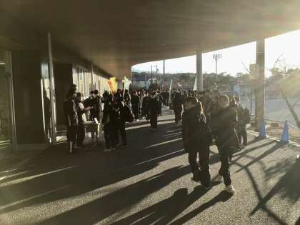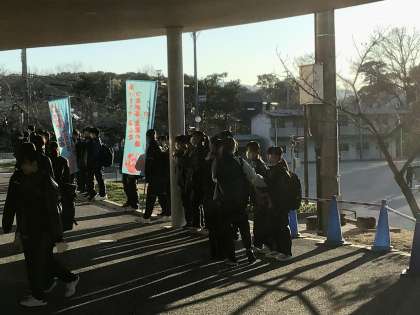 朝日を浴びながら、元気よく登校をする生徒たちです。