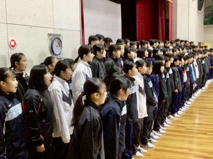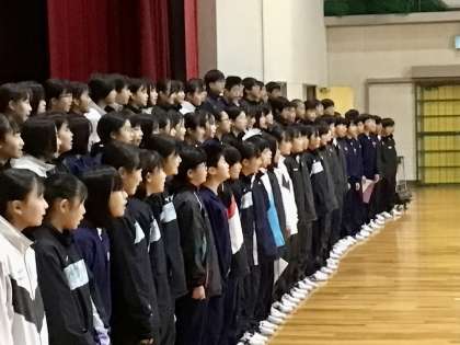 12/22(金)1年生学年集会2 公開日 2023/12/22 更新日 2023/12/22 輝く朝中生! 選抜有志発表が100名を超える生徒たち 次回は、入学説明会で、来年度朝中に入ってくる6年生の児童と保護者の皆様に聞いていただきます。 1年