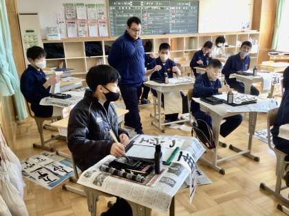 1、2、3、4学級の書き初め大会の様子です。