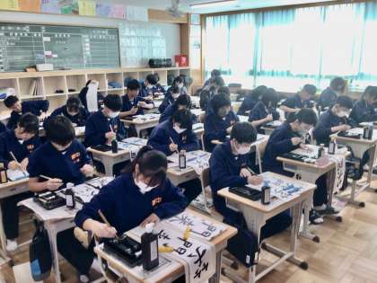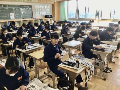 2年1組から3組の書き初め大会の様子です。ご覧ください。