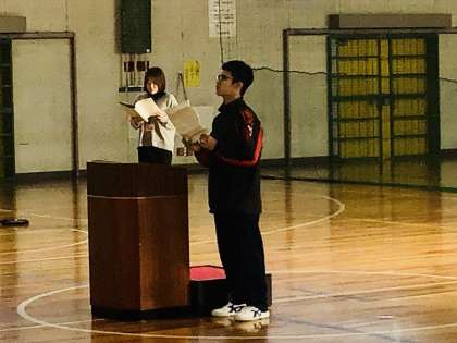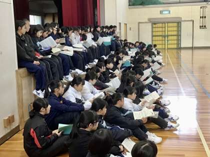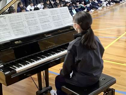 1/11(木)地球星歌を歌う1 公開日 2024/01/11 更新日 2024/01/11 各学年から 1年生の有志の皆さんが、下校後歌を練習していました。 ちょうど写真は、一度歌ったところで、リーダー(指揮者)が皆さんに対して話をしている場面です。 1年