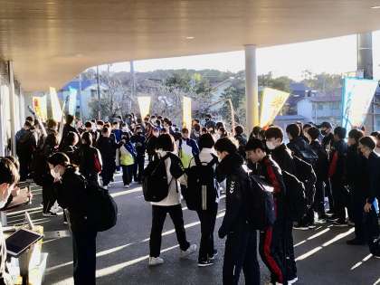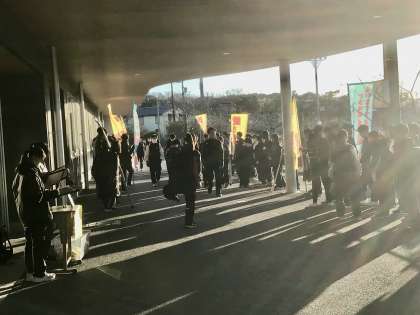 今日も寒い朝になりました。 7時45分より挨拶運動を開始しました。