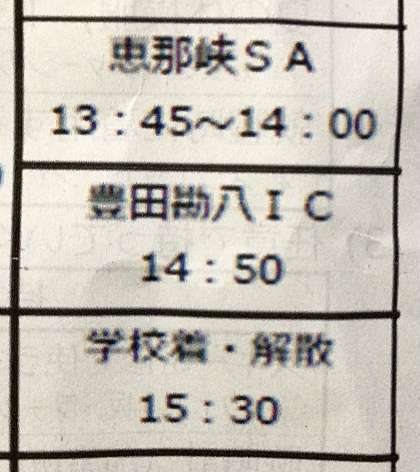 保護者の皆様へ 帰着予定時刻は15時30分です。よろしくお願いします。