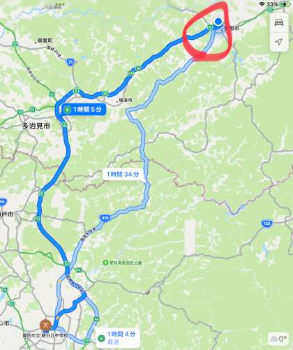 恵那峡を越えて豊田に向かって順調に進んでいます。あと1時間程で到着します。