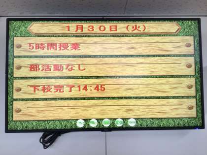 電光掲示板より です。 本日の日課に係る連絡をしています。