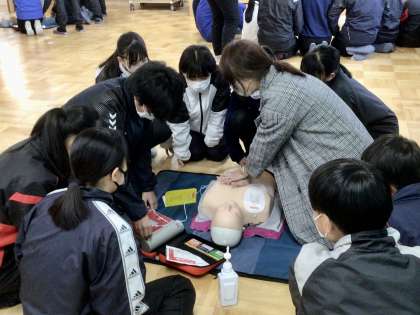 1/31(水)2年救急救命講習会1 公開日 2024/01/31 更新日 2024/01/31 各学年から 2年生が、保健体育の授業の一環で、救急救命講習会を行いました。 写真は、2時間目の27C、28Cの様子です。 2年