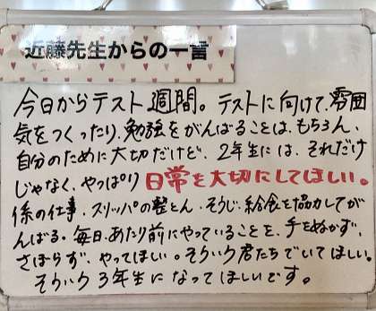 2/7(水)学年末テストが近づいてきました 公開日 2024/02/07 更新日 2024/02/07 各学年から いよいよ学年末テストが近づいてきました。写真は2年7組です。社会のまとめをしています。 2年