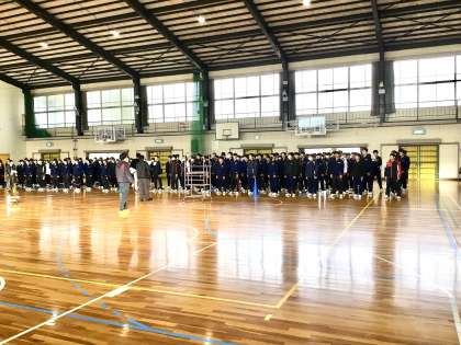 全校での卒業式練習 最後の予行練習の時に歌う旅立ちの日にを3年生が練習していました。