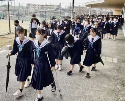 今日のテストは終わりました。生徒は、完全下校をいたしました。