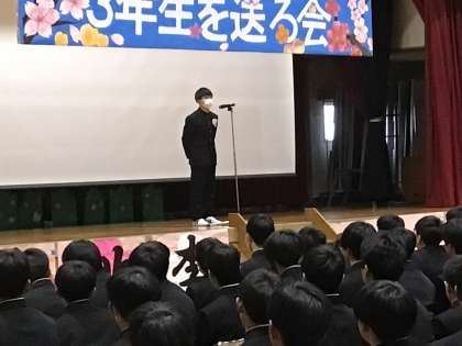 最後の最後に3年生代表の言葉が話されました。1、2年生の皆さんへの感謝の気持ちを伝えました。