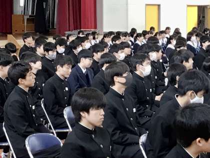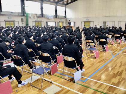 一人一人の先生たちの話を聞く生徒たちです。