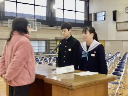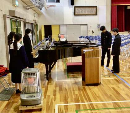 代表生徒が、練習を朝から頑張っています。 良い式になるように。