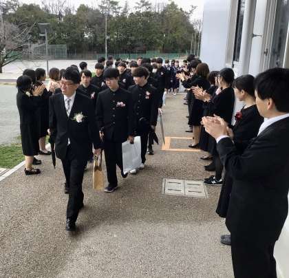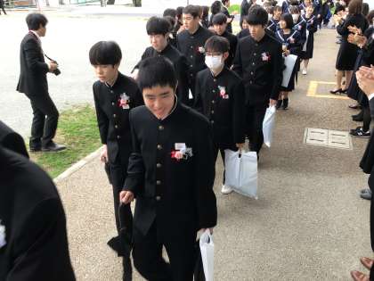 3年1組から順番に門送りを行いました。こちらは、3年2組です。