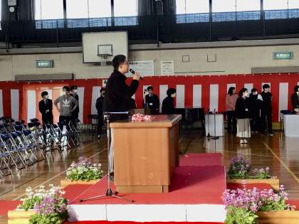 3/7(木)卒業式の片付け1 公開日 2024/03/07 更新日 2024/03/07 各学年から 2年生全員での片付けが始まります。全体の説明を澤田先生が行っています。朝の時間を使っての活動です。 2年