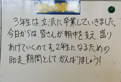 1年生の学年掲示板です。助走から、思いっきり1年生頑張ってください。