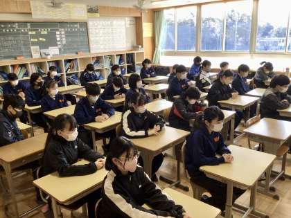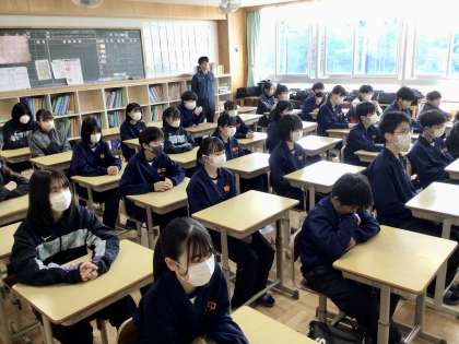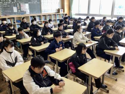 1年5組 4組 3組の選挙演説を聞く生徒たちです。